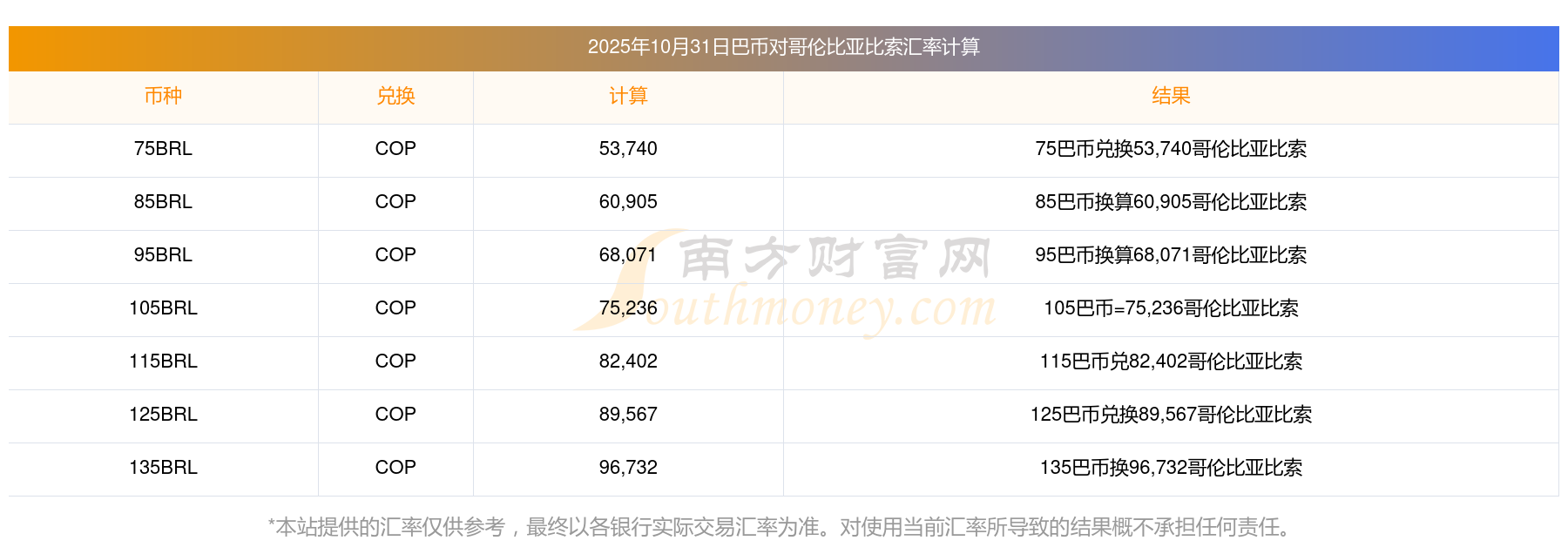 今日巴幣對哥倫比亞比索計算匯率查詢10月31日