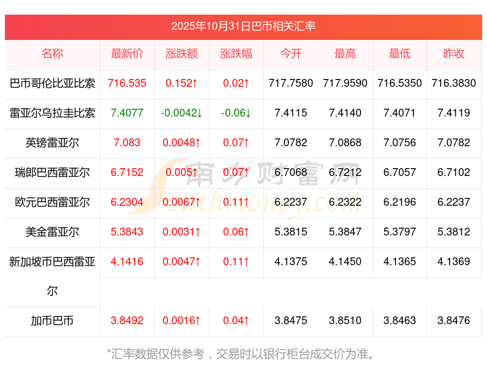 南方財富網(wǎng)為您提供巴幣對哥倫比亞比索匯率最新價格詳情。