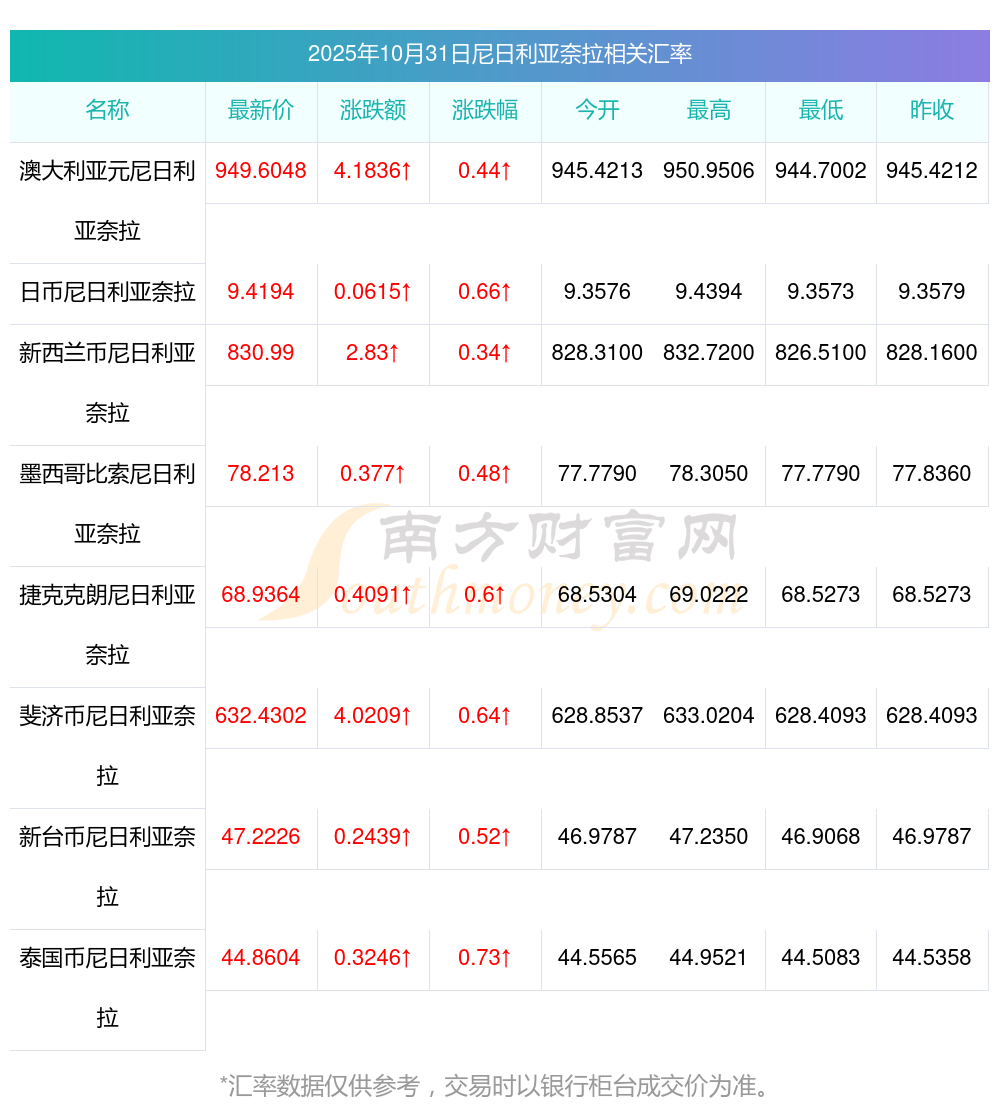 2025年10月31日尼日利亞奈拉相關(guān)匯率查詢
