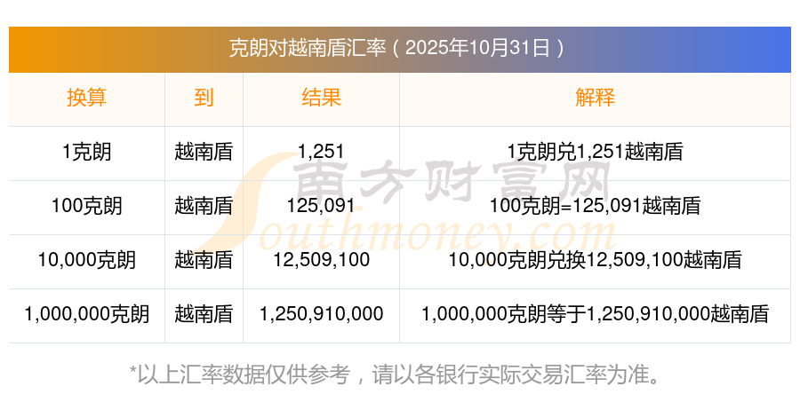 匯率換算2025年10月31日 今天42克朗能換越南盾是多少