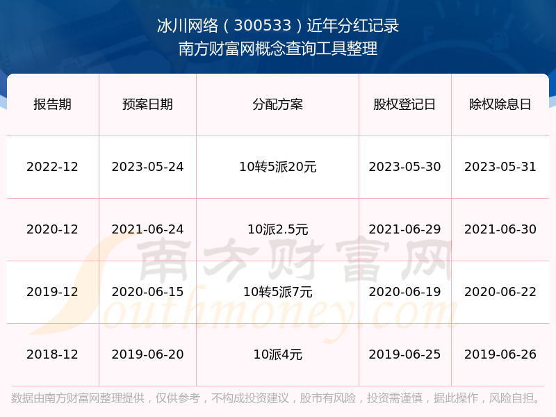 近年冰川網(wǎng)絡(luò)分紅情況如下表所示: