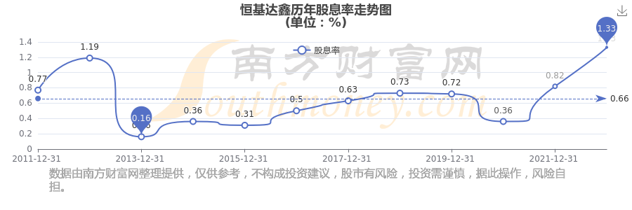 近年恒基達(dá)鑫年度股息率走勢如下圖: