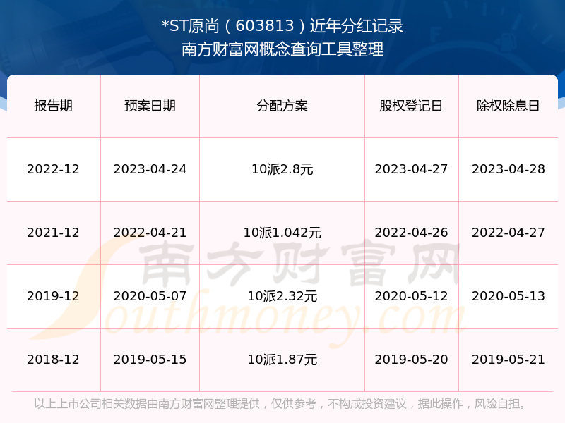 *ST原尚最新一次公布的分紅方案:10派2.8元。