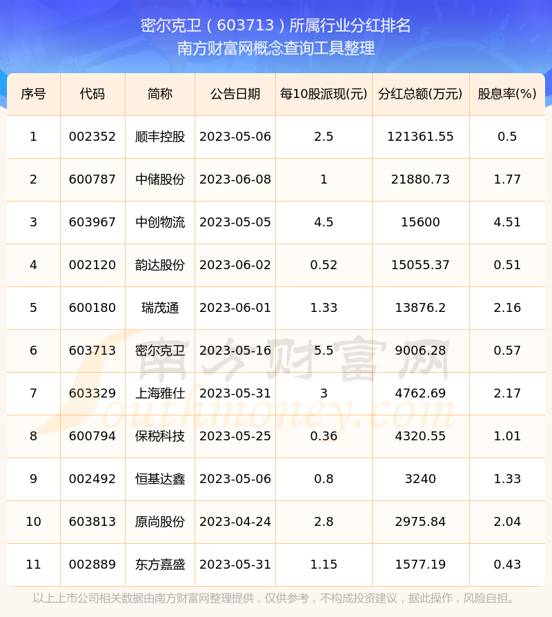 二、密爾克衛(wèi)603713行業(yè)分紅排名