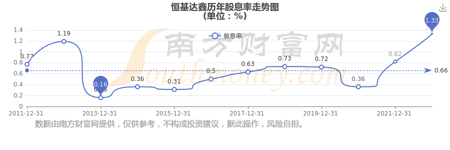 近年恒基達(dá)鑫年度股息率走勢(shì)如下圖: