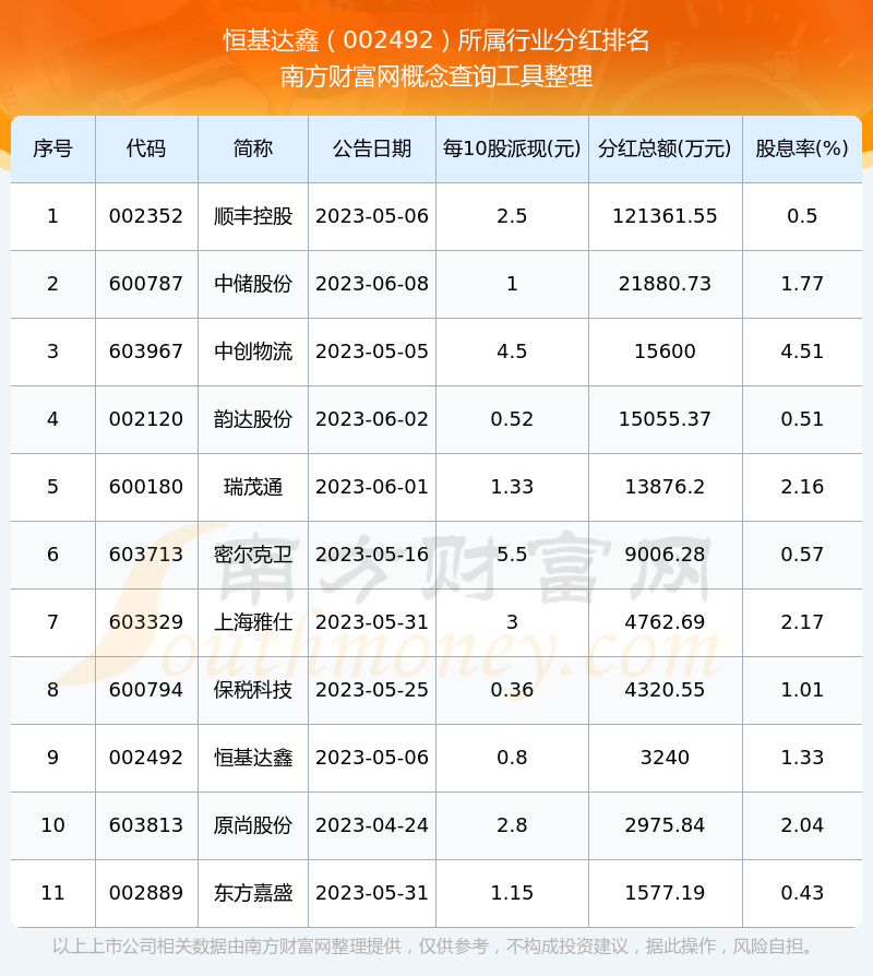 二、恒基達(dá)鑫002492行業(yè)分紅排名