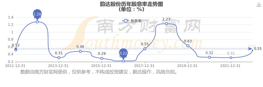 近年韻達(dá)股份年度股息率走勢如下圖: