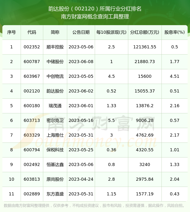 二、韻達(dá)股份002120行業(yè)分紅排名