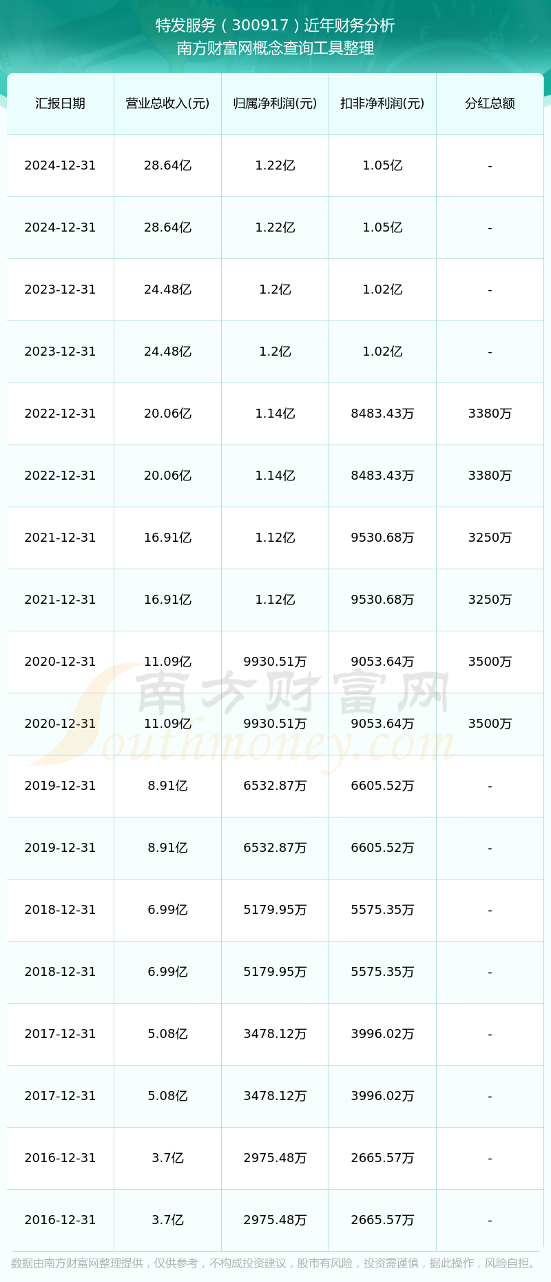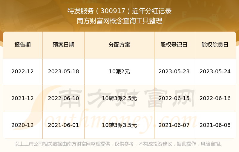 特發(fā)服務(wù)歷年分紅派息情況如下表所示: