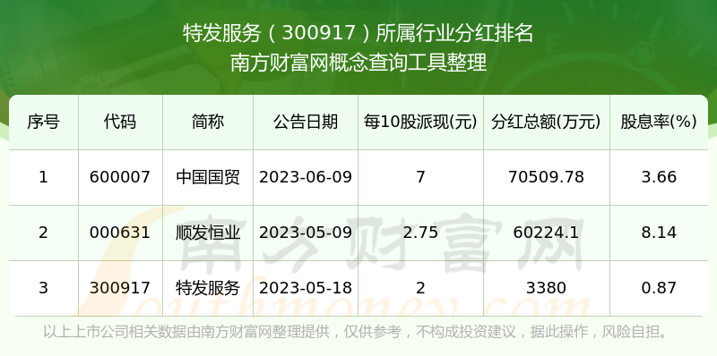 二、特發(fā)服務(wù)300917行業(yè)分紅排名