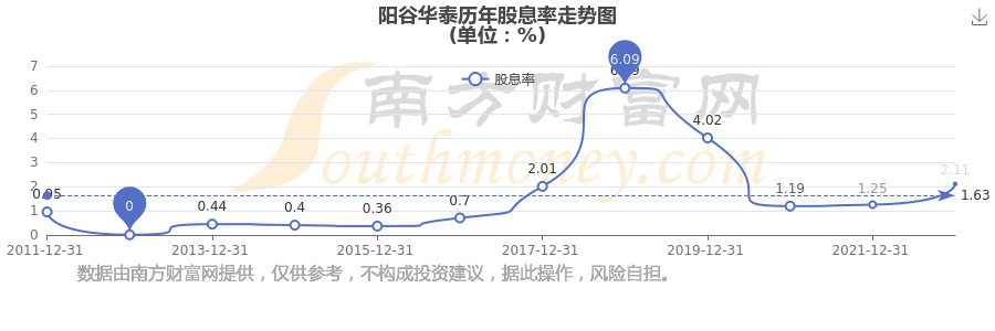 近年陽(yáng)谷華泰年度股息率走勢(shì)如下圖:
