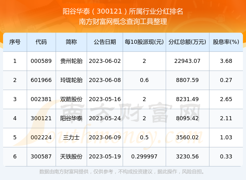 二、陽(yáng)谷華泰300121行業(yè)分紅排名