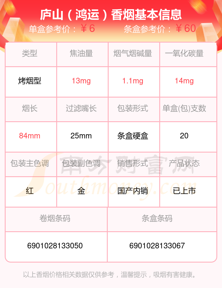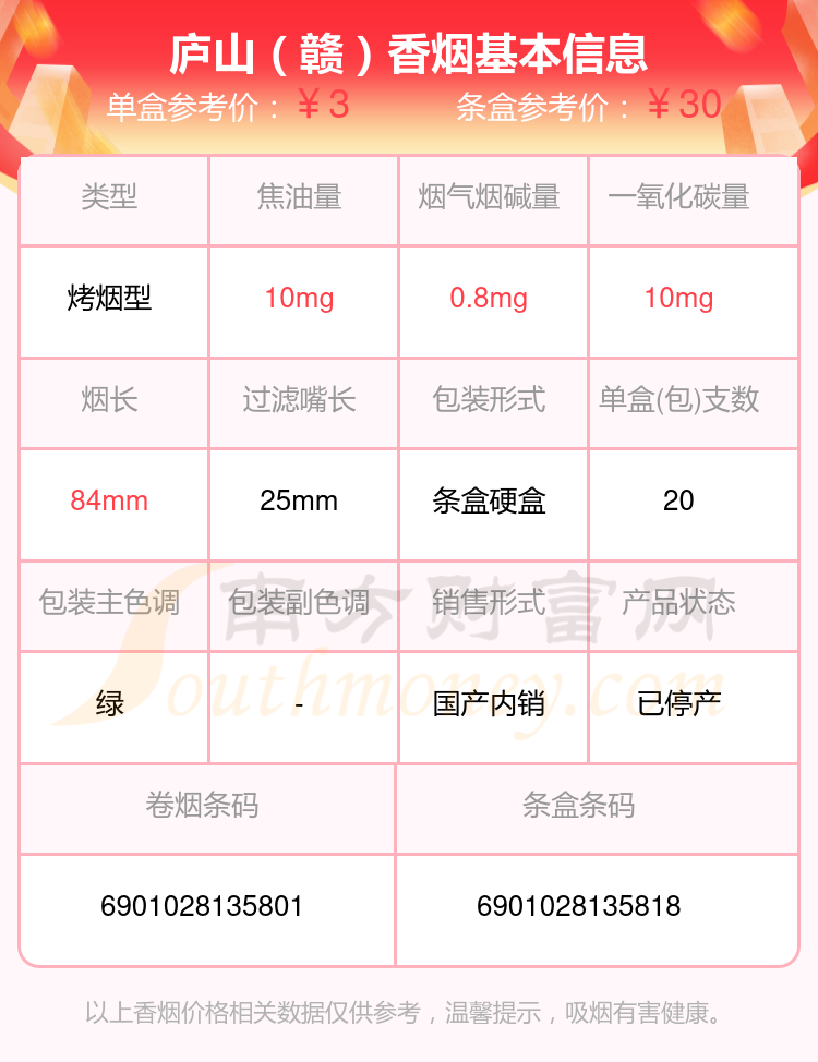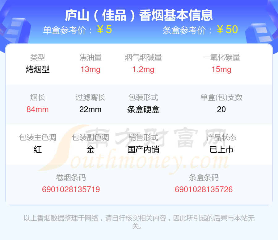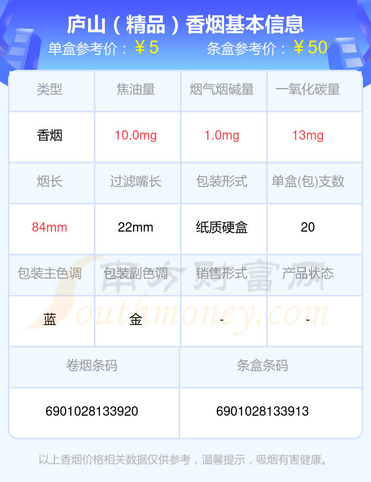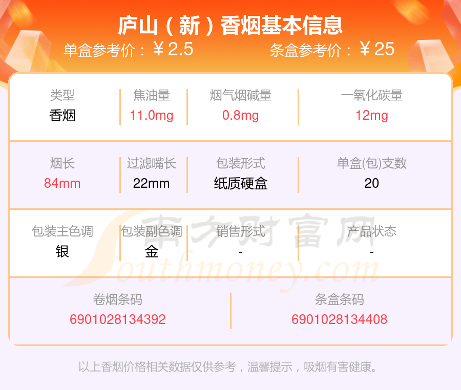 2025年尼古丁量1.5mg以下的廬山香煙查詢一覽
