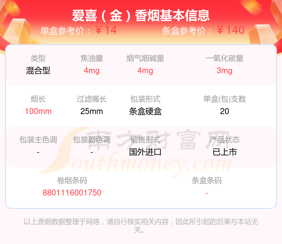 擇煙網(wǎng)為大家盤點了煙堿超過2mg的ESSE(愛喜)香煙,有愛喜(薄荷細(xì)支)、愛喜(金)等,詳細(xì)價格如下: