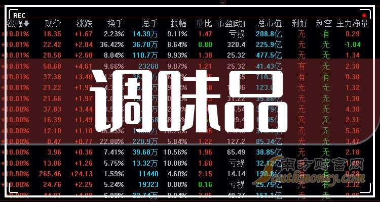 調(diào)味品概念龍頭有哪些?據(jù)南方財富網(wǎng)概念查詢工具數(shù)據(jù)顯示,調(diào)味品概念龍頭有: