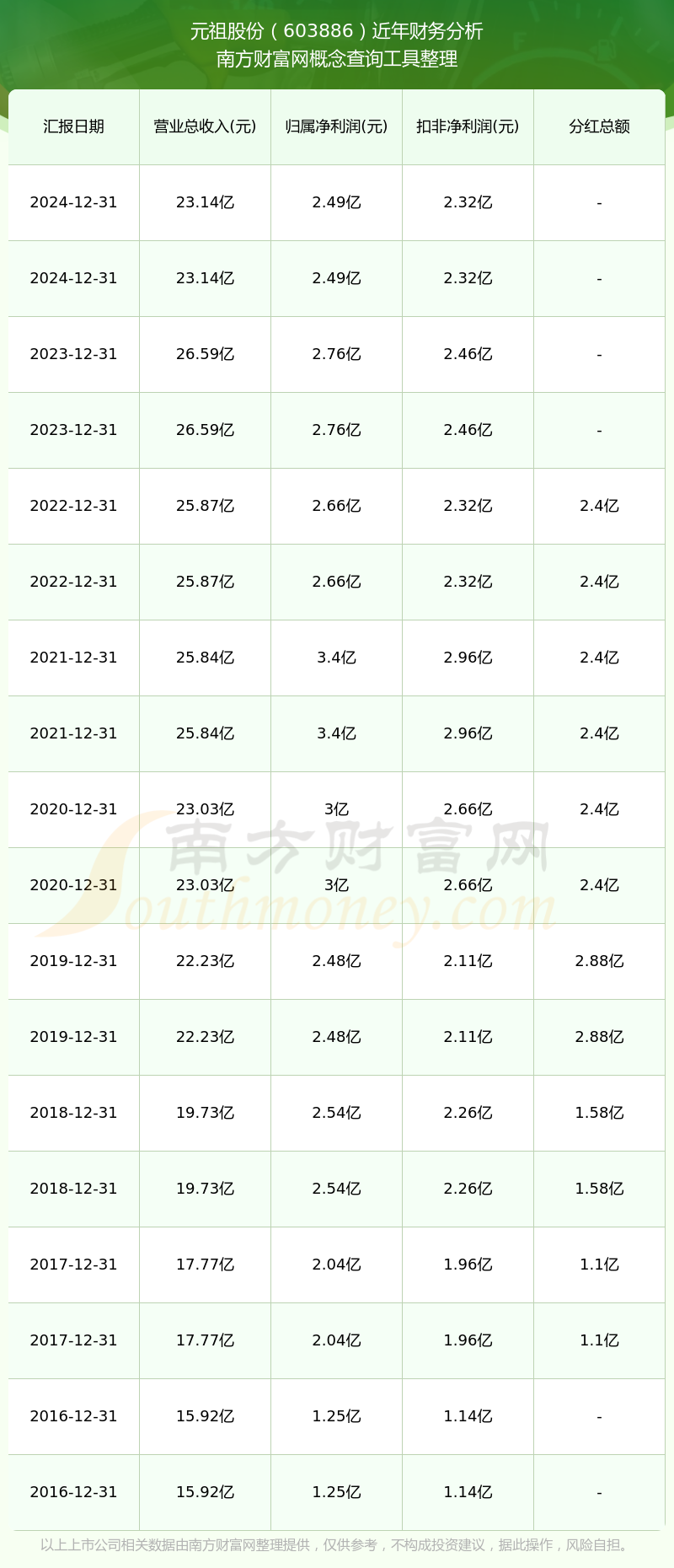 2024年元祖股份總營收23.14億,同比增長-12.99%;凈利潤2.49億,同比增長-9.98%;銷售毛利率63.33%。