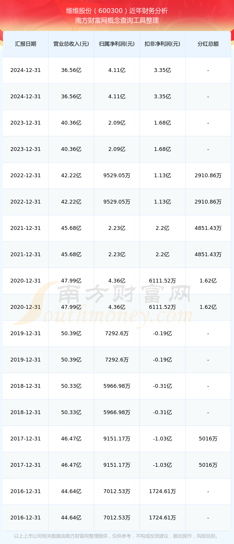 近年維維股份分紅派息情況如下表所示: