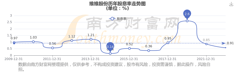維維股份歷年股息率走勢(shì)如下圖: