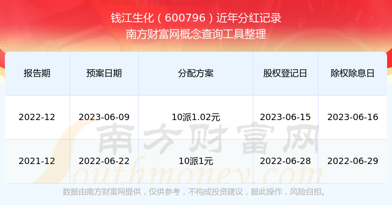 錢江生化最新一次公布的分紅方案:10派1.02元。