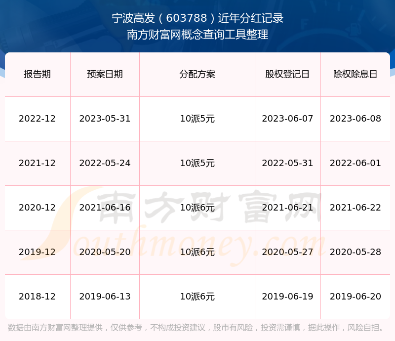 寧波高發(fā)歷年分紅派息情況如下表所示: