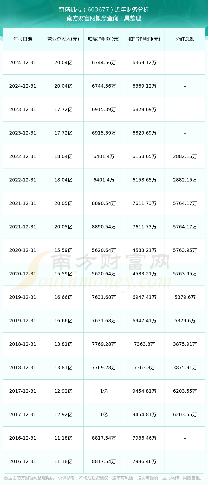 近年奇精機(jī)械分紅派息情況如下表所示: