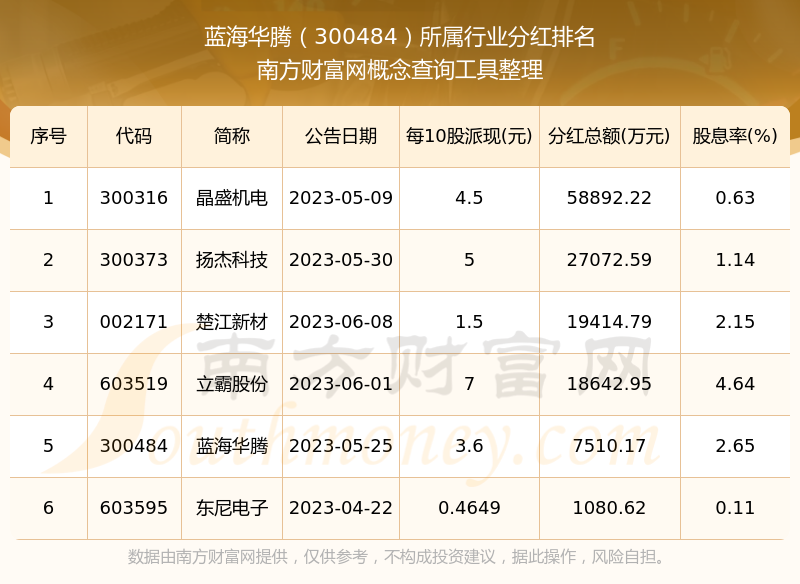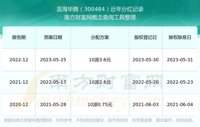 二、藍(lán)海華騰300484行業(yè)分紅排名