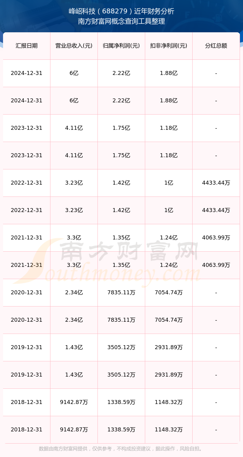 峰岹科技公司2024年實現(xiàn)營業(yè)收入6億元,同比增長45.94%;凈利潤2.22億元,同比增長27.18%;毛利率53.24%。