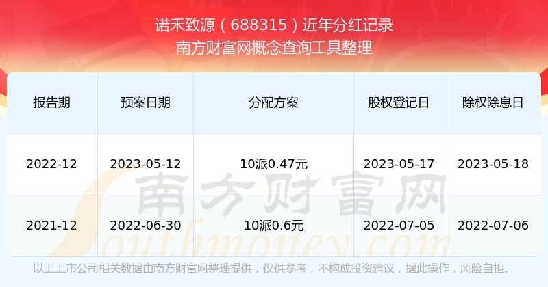 諾禾致源最新一次公布的分紅方案為10派0.47元。本次權(quán)益分派股權(quán)登記日為2023年5月17日,除權(quán)除息日為2023年5月18日,派息日為2023年5月18日。