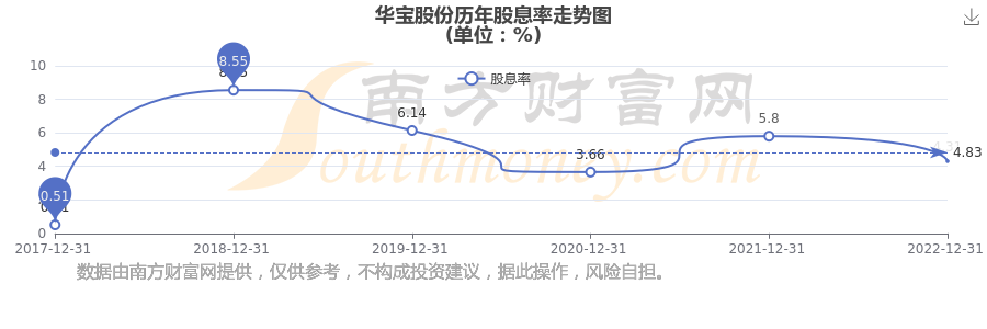 近年華寶股份年度股息率走勢(shì)如下圖: