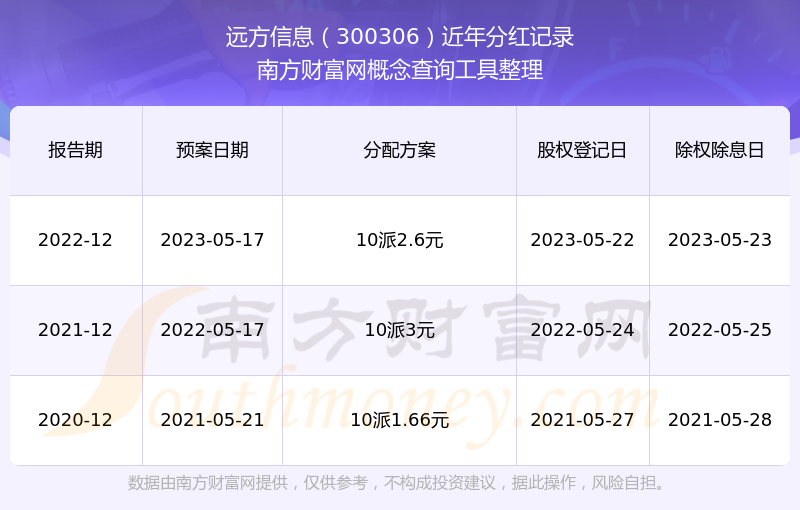 一、遠(yuǎn)方信息(300306)股票分紅記錄