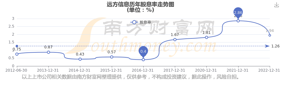 近年遠(yuǎn)方信息年度股息率走勢(shì)如下圖: