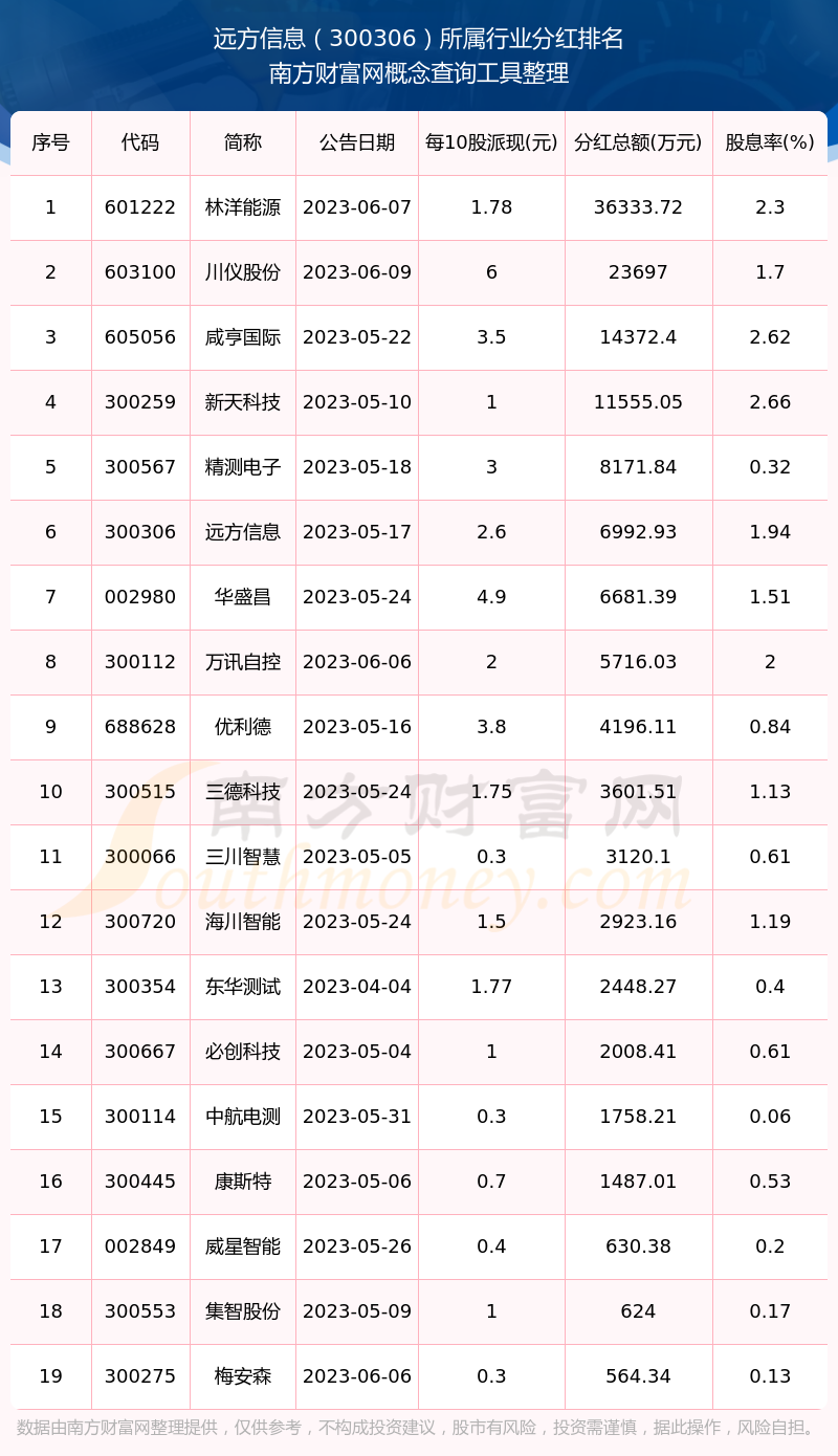 二、遠(yuǎn)方信息300306行業(yè)分紅排名