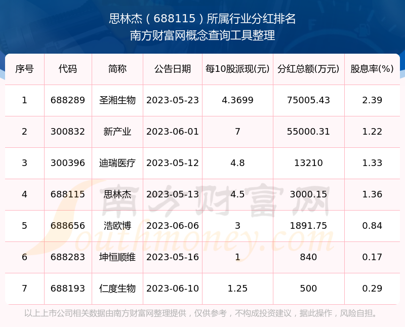 二、思林杰688115行業(yè)分紅排名