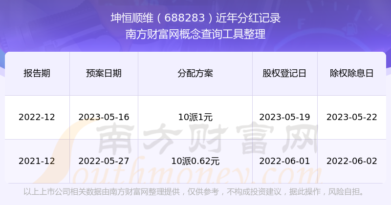 一、坤恒順維(688283)股票分紅記錄
