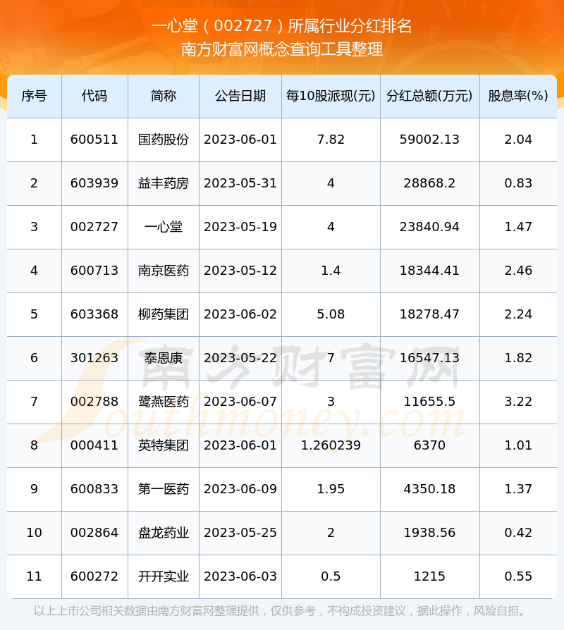 二、一心堂002727行業(yè)分紅排名