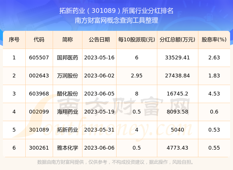 二、拓新藥業(yè)301089行業(yè)分紅排名