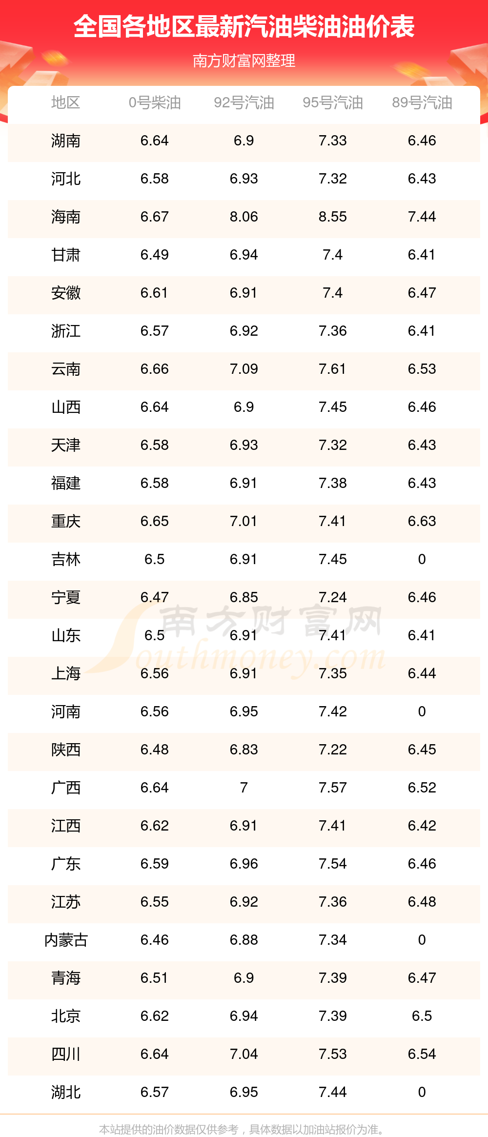 油價調(diào)整最新消息:11月15日,拱墅區(qū)汽油、柴油每升最新價格為(11月11日調(diào)整后的價格):92號汽油為6.92元,增了0.1元,增幅達1.47%;95號汽油為7.36元,增了0.11元,增幅達1.52%;89號汽油為6.41元,增了0.09元,增幅達1.42%;0號柴油為6.57元,增了0.11元,增幅達1.7%。下一輪油價調(diào)整時間11月24日24時。