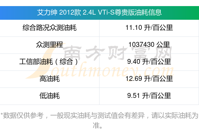 根據(jù)多位車主實(shí)測(cè)得出數(shù)據(jù),該車型低油耗為9.51升每百公里,高油耗為12.69升每百公里,綜合路況眾測(cè)油耗為11.10升每百公里,工信部綜合油耗為9.40升每百公里。