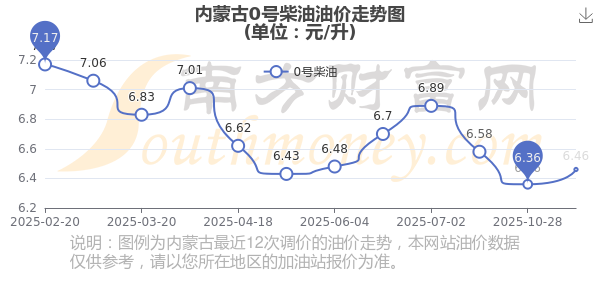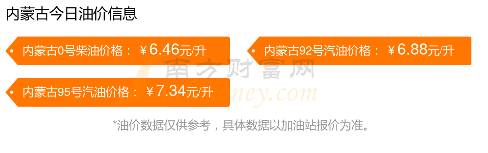 油價(jià)調(diào)整最新消息:11月15日內(nèi)蒙古汽油、柴油油價(jià):本輪油價(jià)調(diào)整時(shí)間是11月11日,92號汽油6.88元,升了0.1元,升幅達(dá)1.48%;95號汽油7.34元,升了0.1元,升幅達(dá)1.38%;0號柴油6.46元,升了0.1元,升幅達(dá)1.57%。下一輪油價(jià)調(diào)整時(shí)間11月24日24時(shí)。