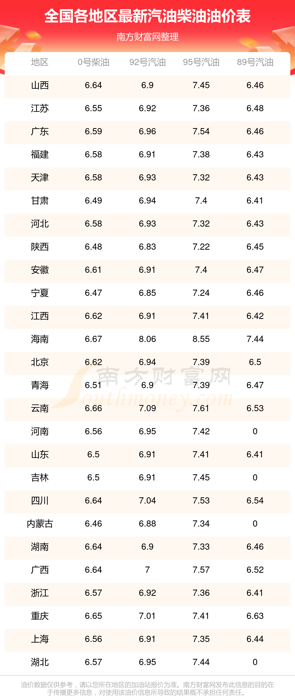 2025年11月15日全國(guó)油價(jià)調(diào)整及最新汽油價(jià)格表