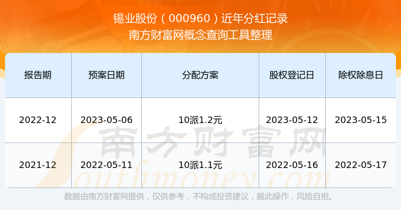 二、錫業(yè)股份000960行業(yè)分紅排名