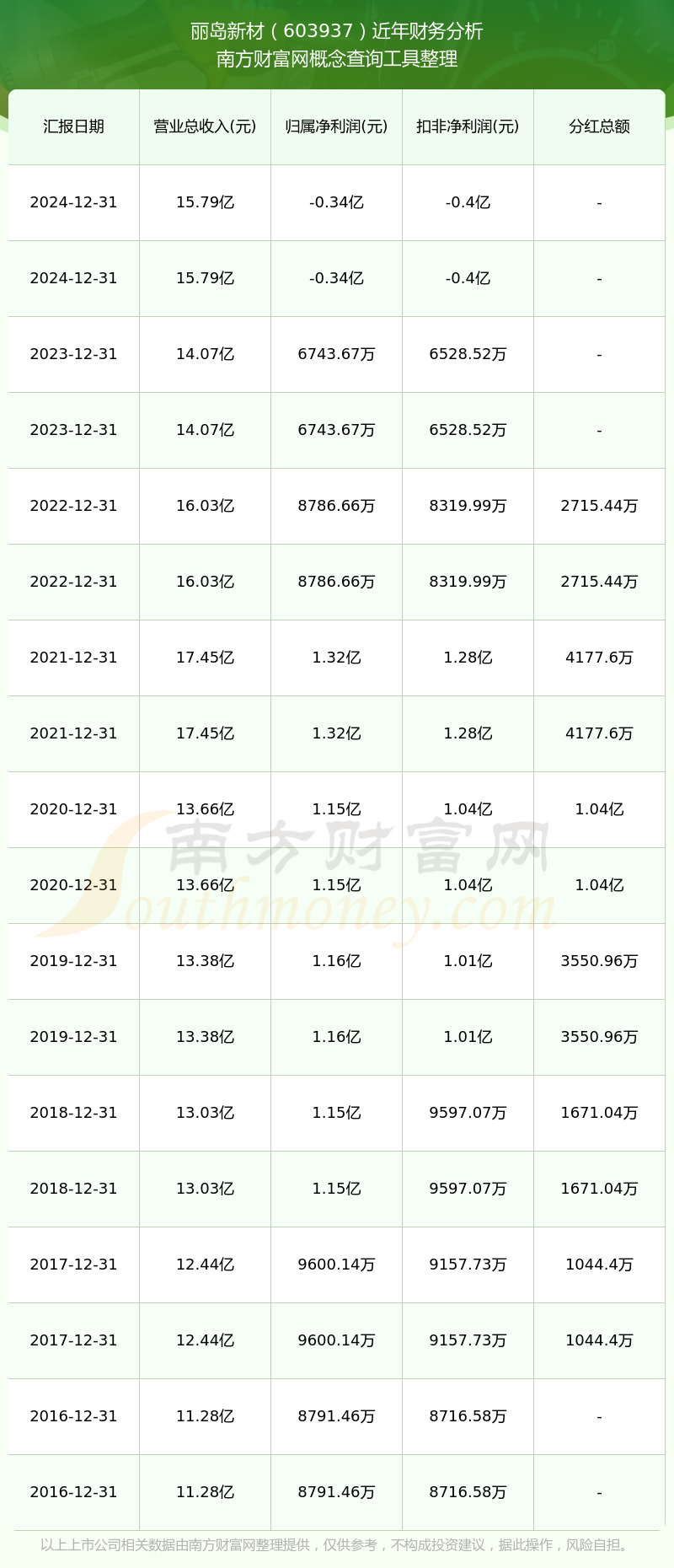 2024年報顯示,麗島新材實現(xiàn)營收15.79億,同比增長12.21%;凈利潤-3422.65萬,同比增長-150.75%;毛利率6.48%。