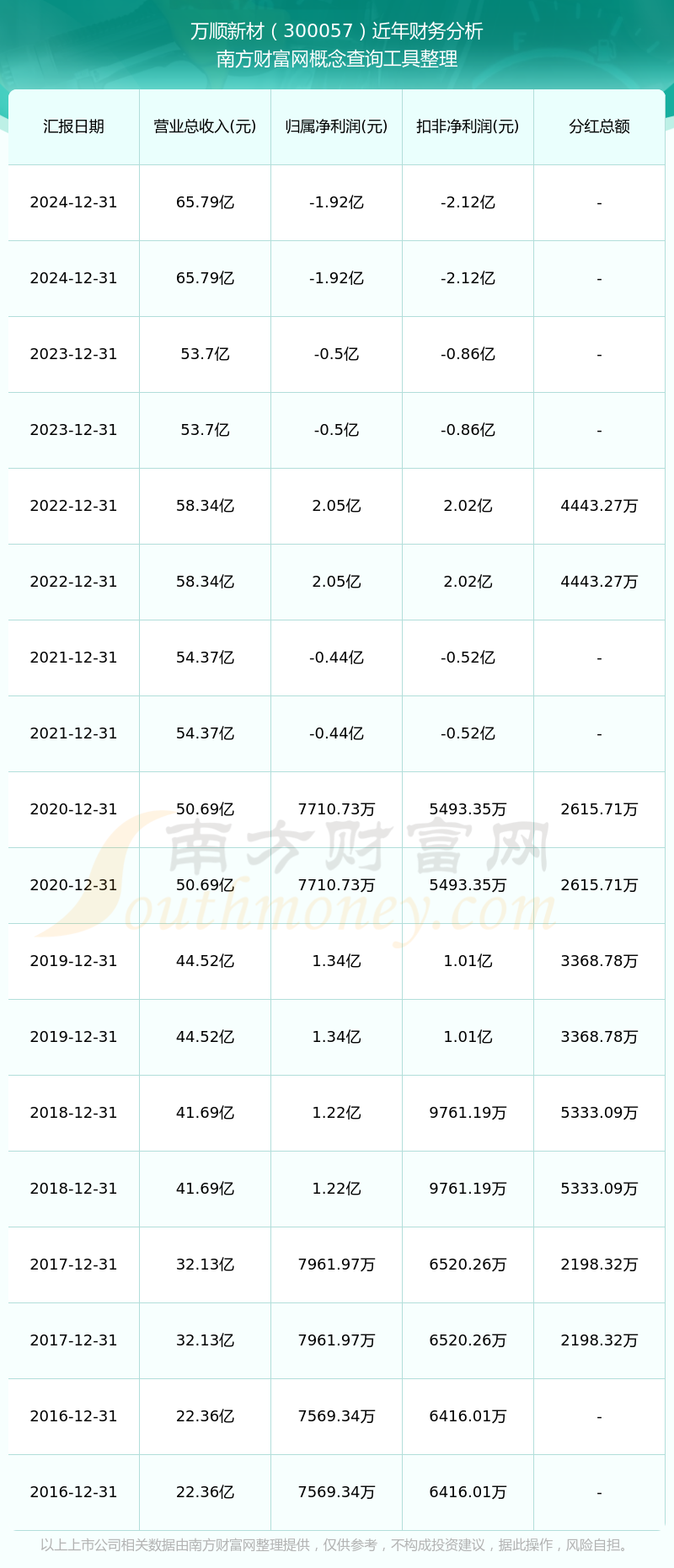 萬順新材公司2024年實(shí)現(xiàn)營收65.79億元,凈利潤-1.92億元,毛利率5.21%。
