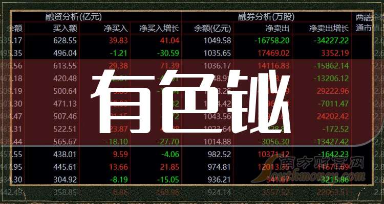 A股有色鉍上市龍頭公司一覽,據(jù)南方財富網(wǎng)概念查詢工具數(shù)據(jù)顯示,有色鉍上市龍頭公司有: