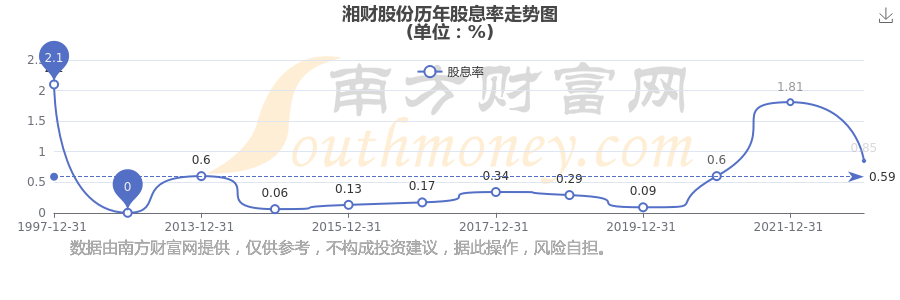 近年湘財(cái)股份年度股息率走勢(shì)如下圖: