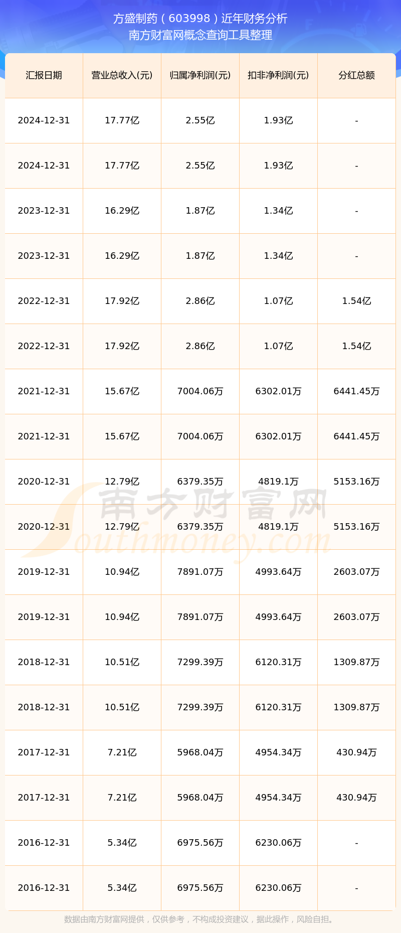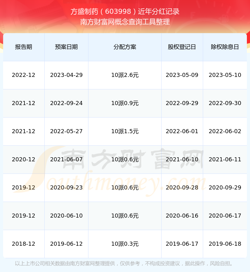 近年方盛制藥分紅派息情況如下表所示: