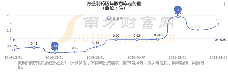 方盛制藥歷年股息率走勢如下圖: