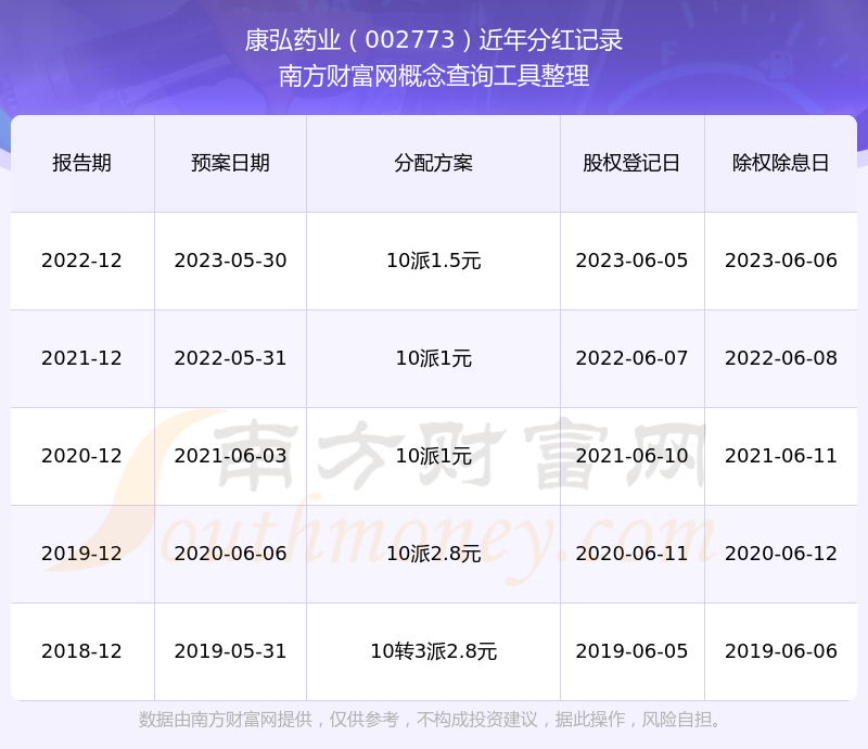 一、康弘藥業(yè)(002773)股票分紅記錄