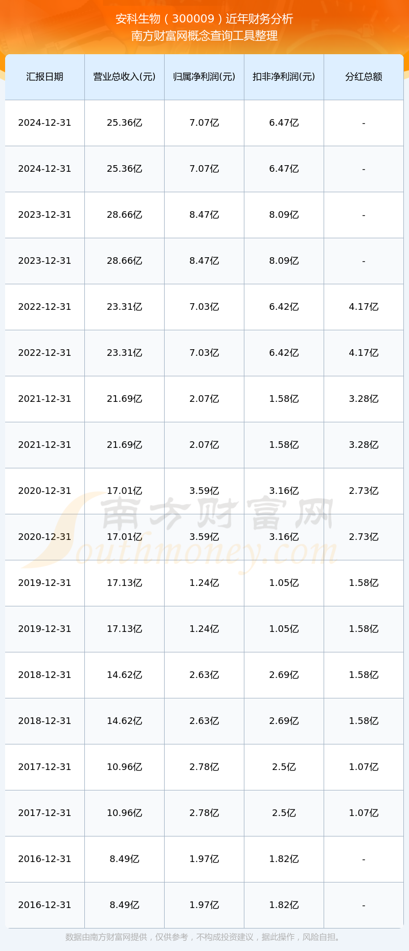 安科生物歷年分紅派息情況如下表所示: