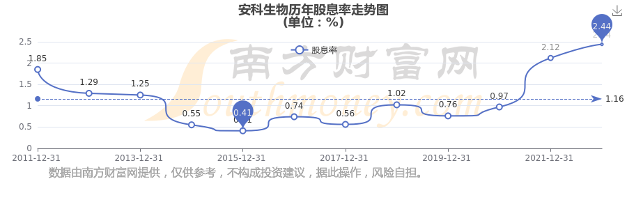 安科生物歷年股息率走勢如下圖: